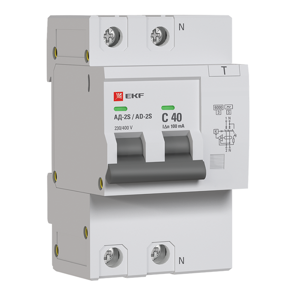 Дифференциальный автомат АД-2 S 40А/100мА (хар, C, AC, электронный) 6кА PROxima | код DA2-6-40-100S-pro | EKF