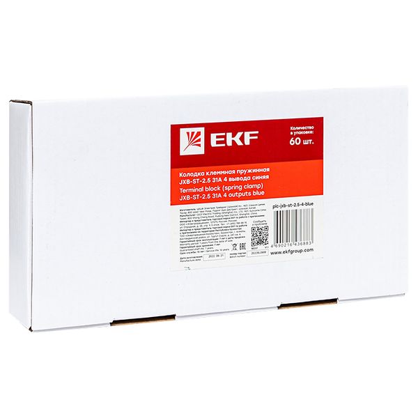 Колодка клеммная пружинная JXB-ST-2.5 31А 4 выводасиняя PROxima | код plc-jxb-st-2.5-4-blue | EKF
