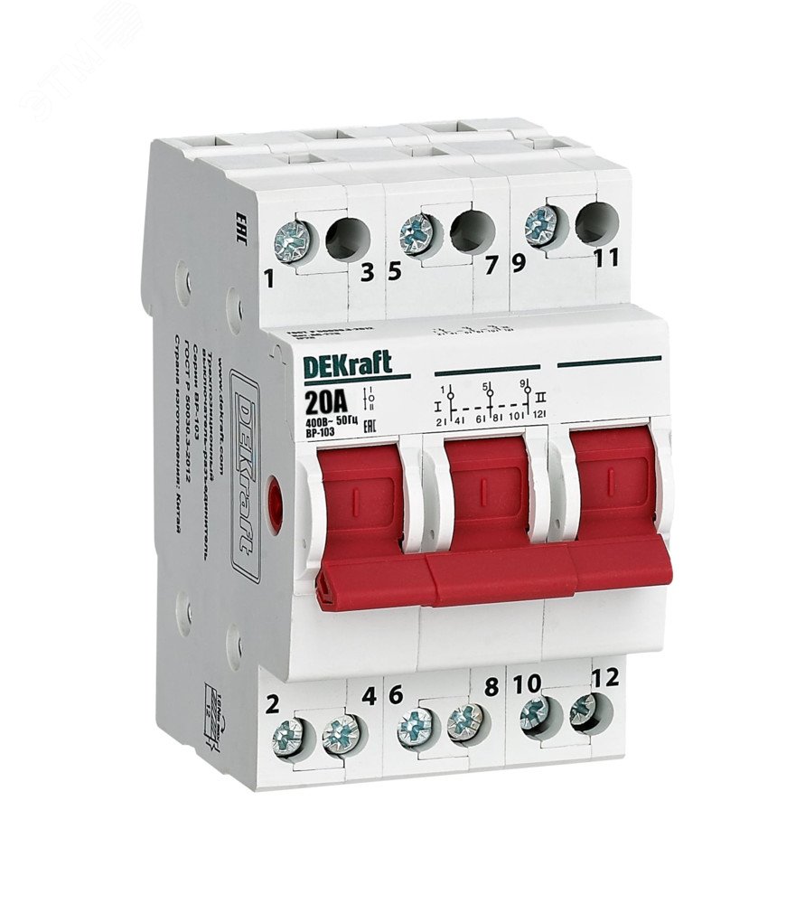 Выключатель-разъединитель трехпозиционный 3P 20A ВР-103 | код 17213DEK | Dekraft