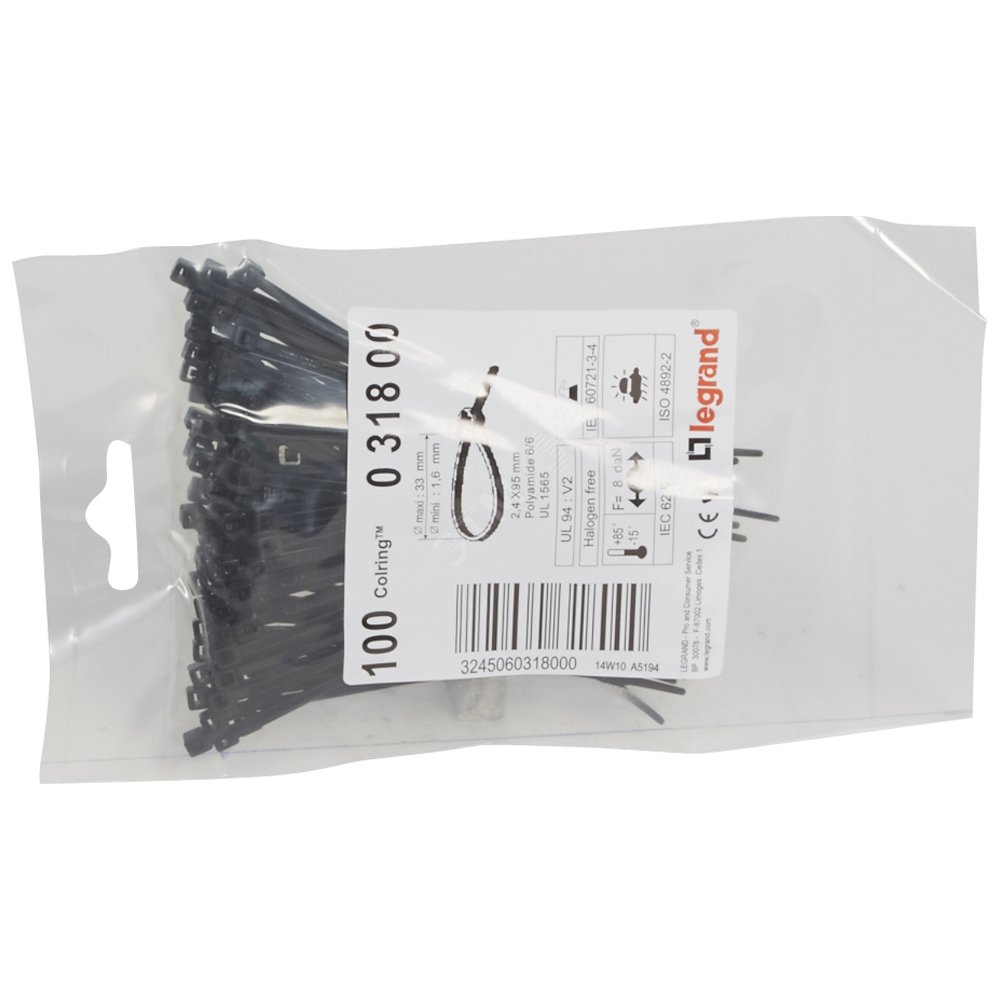 Colring Хомут черный 2.4х95 | код 31800 | Legrand