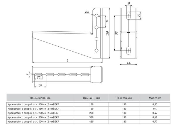 Наименование в прайсе производителя Кронштейн с опорой основание 100 мм (2 мм) EKF