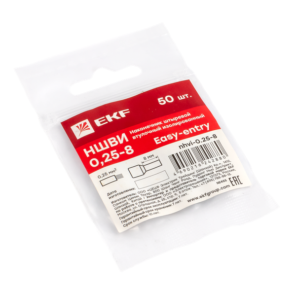 Наименование в прайсе производителя Наконечник штыревой втулочный НШвИ 0,25-8 (50шт,) EKF