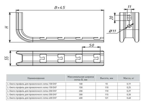 Наименование в прайсе производителя L-Омега профиль для проволочного лотка 400 (1,5 мм) EKF
