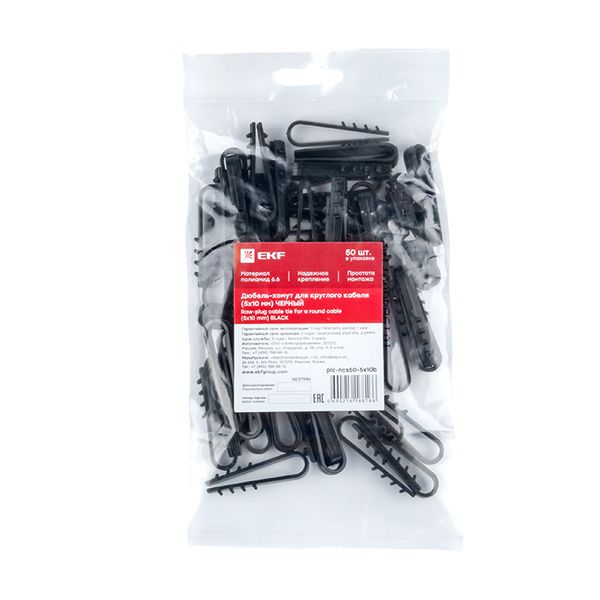 Наименование в прайсе производителя Дюбель-хомут для круглого кабеля (5-10мм) черный (50шт,) EKF PROxima