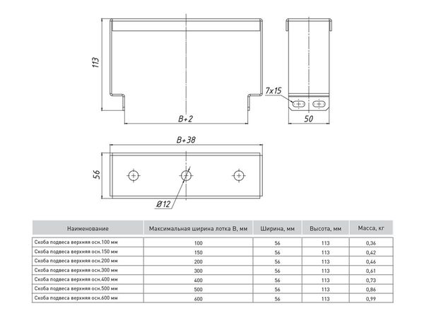 Наименование в прайсе производителя Скоба подвеса верхняя 200 мм (2 мм) HDZ EKF