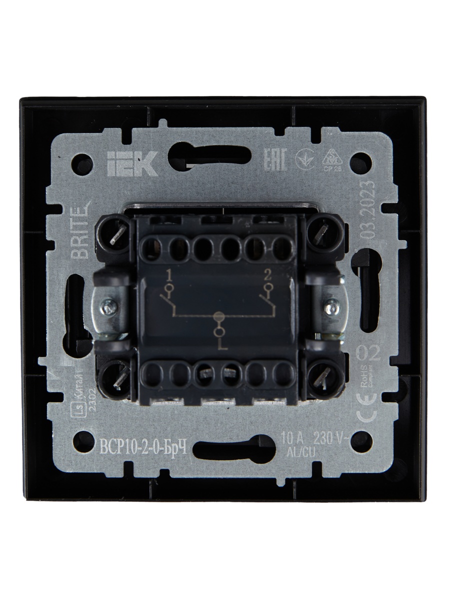 Выключатель 2-кл. СП BRITE ВСР10-2-0-БрЧ 10А в сборе черн. | код BR-V20-0-10-K02-F | IEK