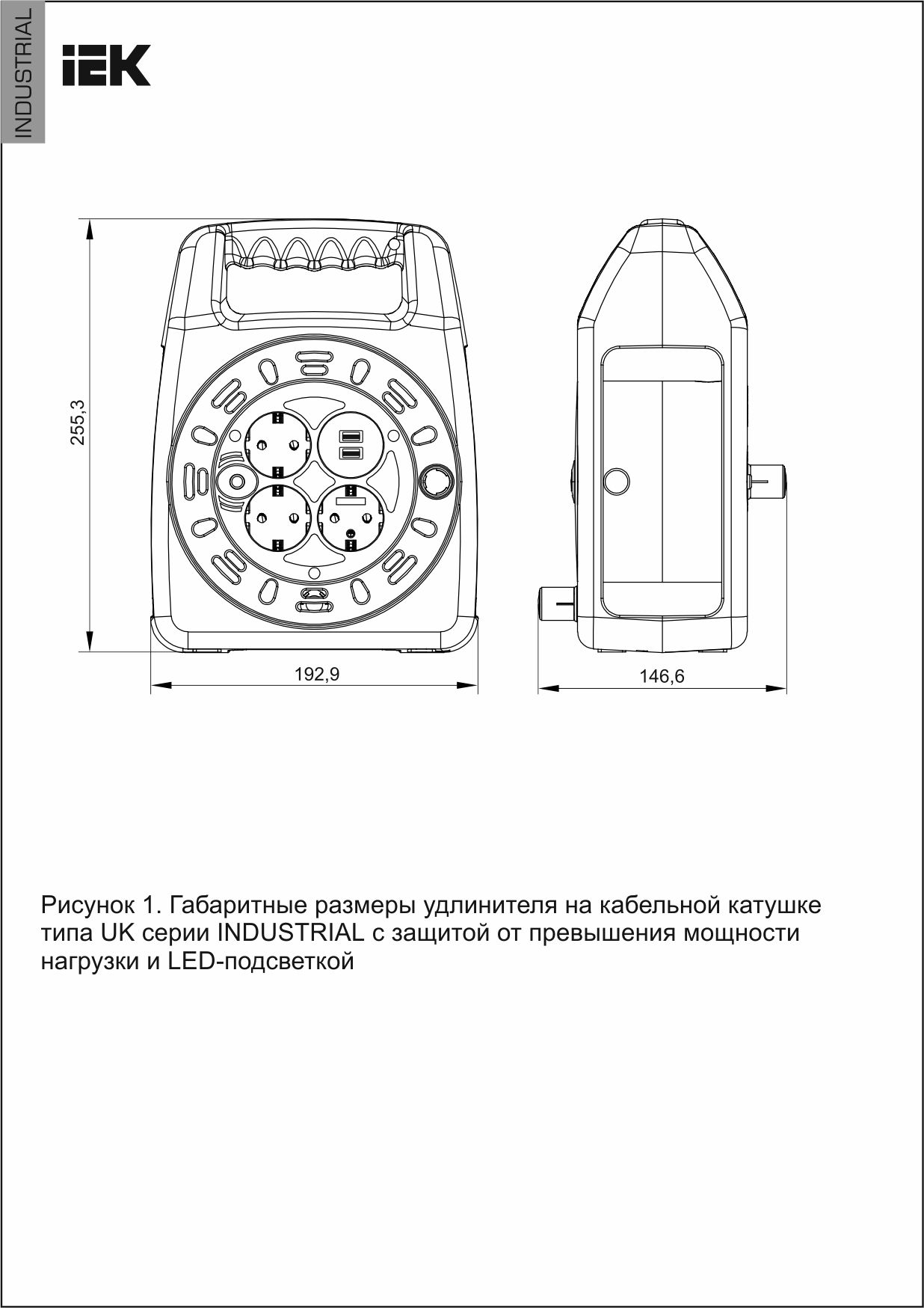 Удлинитель на катушке 3х15м с заземл. Industrial УК15 2P+PE 3х1.5кв.мм USBх2 LED термозащита | код IN-KP24-16-03-15-UL | IEK
