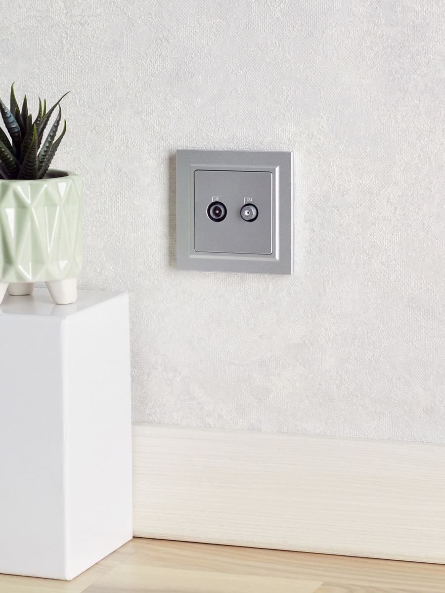 Купить BRITE Розетка двойная TV+SAT РТВ/РСп12-БрА алюминий | код BR-AF20-O-K47 | IEK | Магазин электрики - электрооборудование от разных производителей.