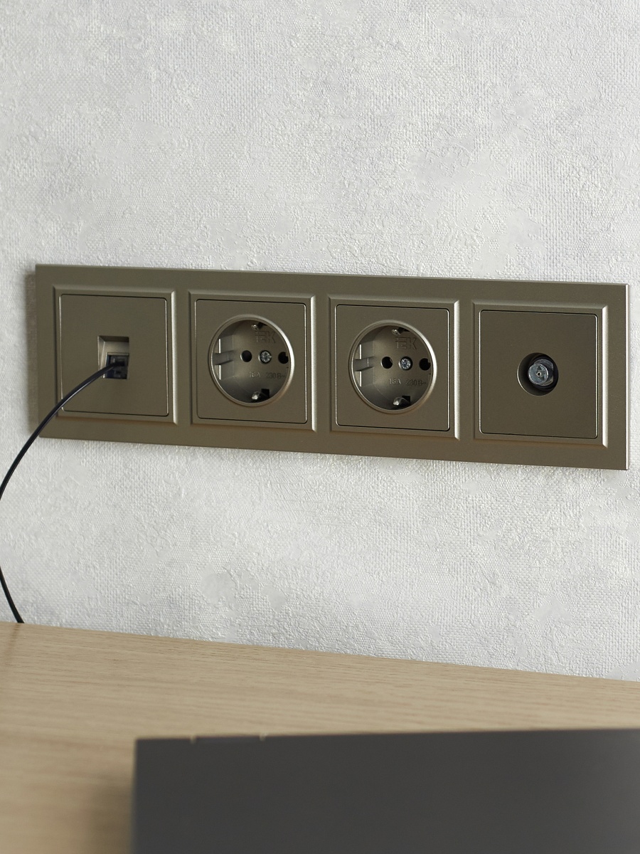 Купить BRITE Рамка 4-местная РУ-4-БрШ шампань | код BR-M42-K37 | IEK | Магазин электрики - электрооборудование от разных производителей.