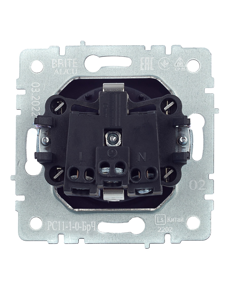 Наименование в прайсе производителя BRITE Розетка 1-местная с заземлением без защитных шторок 16А РС11-1-0-БрЧ черный