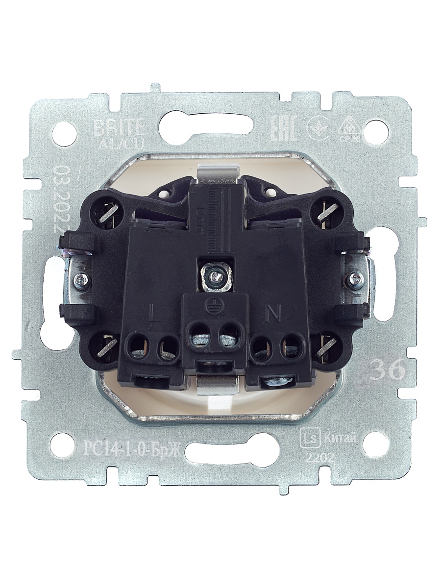 Купить BRITE Розетка 1-местная с заземлением с защитными шторками 16А РС14-1-0-БрЖ жемчуг | код BR-R14-16-K36 | IEK | Магазин электрики - электрооборудование от разных производителей.
