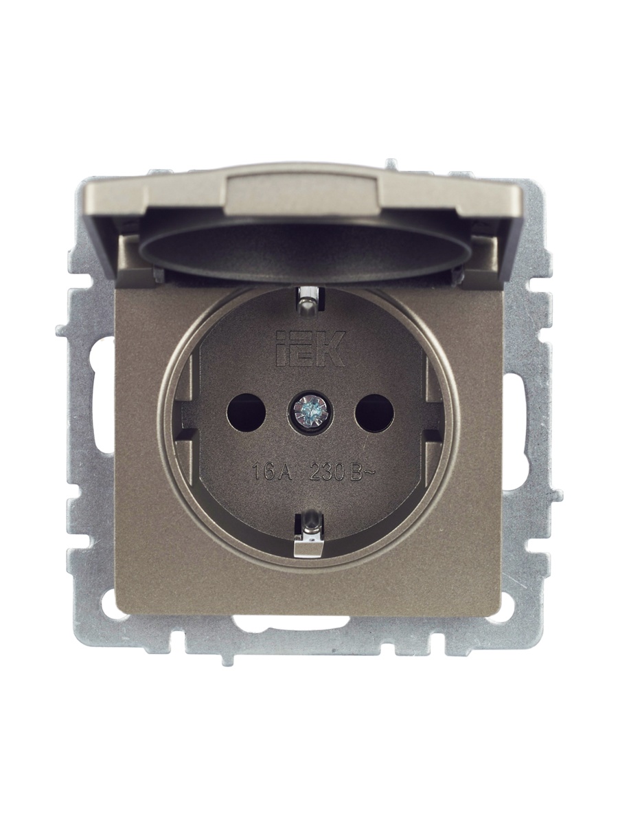 Купить BRITE Розетка 1-местная с заземлением с защитными шторками и крышкой 16А IP44 РСбш10-3-44-БрШ шампань | код BR-R16-16-44-K37 | IEK | Магазин электрики - электрооборудование от разных производителей.