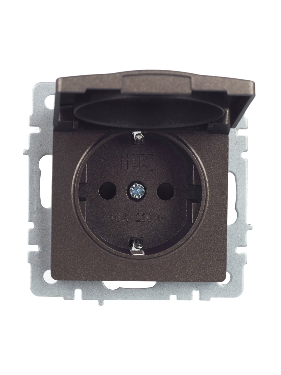 Купить BRITE Розетка 1-местная с заземлением с защитными шторками и крышкой 16А IP44 РСбш10-3-44-БрТБ темная бронза | код BR-R16-16-44-K45 | IEK | Магазин электрики - электрооборудование от разных производителей.