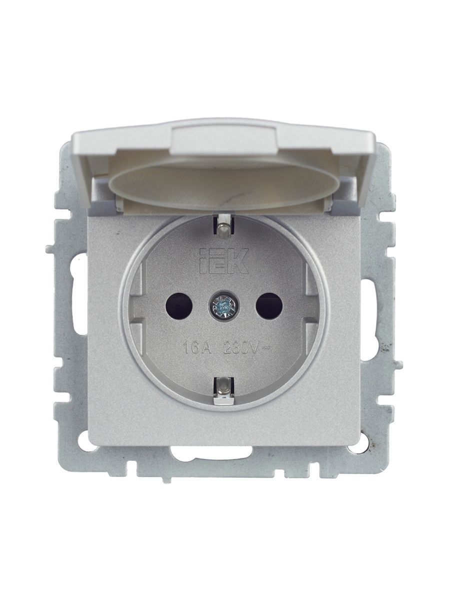 Купить BRITE Розетка 1-местная с заземлением с защитными шторками и крышкой 16А IP44 РСбш10-3-44-БрА алюминий | код BR-R16-16-44-K47 | IEK | Магазин электрики - электрооборудование от разных производителей.