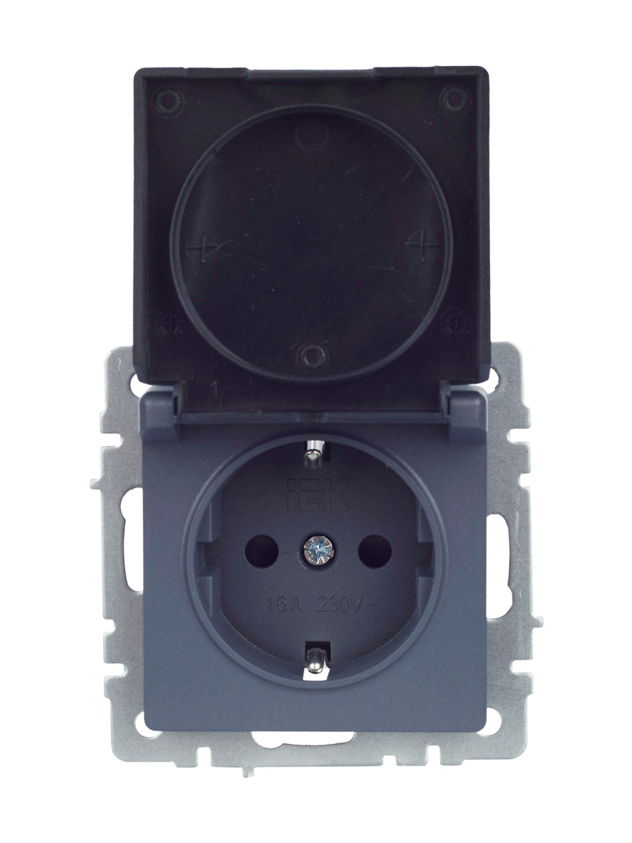 Купить BRITE Розетка 1-местная с заземлением с защитными шторками и крышкой 16А IP20 РСбш10-3-БрМ маренго | код BR-R16-16-K35 | IEK | Магазин электрики - электрооборудование от разных производителей.