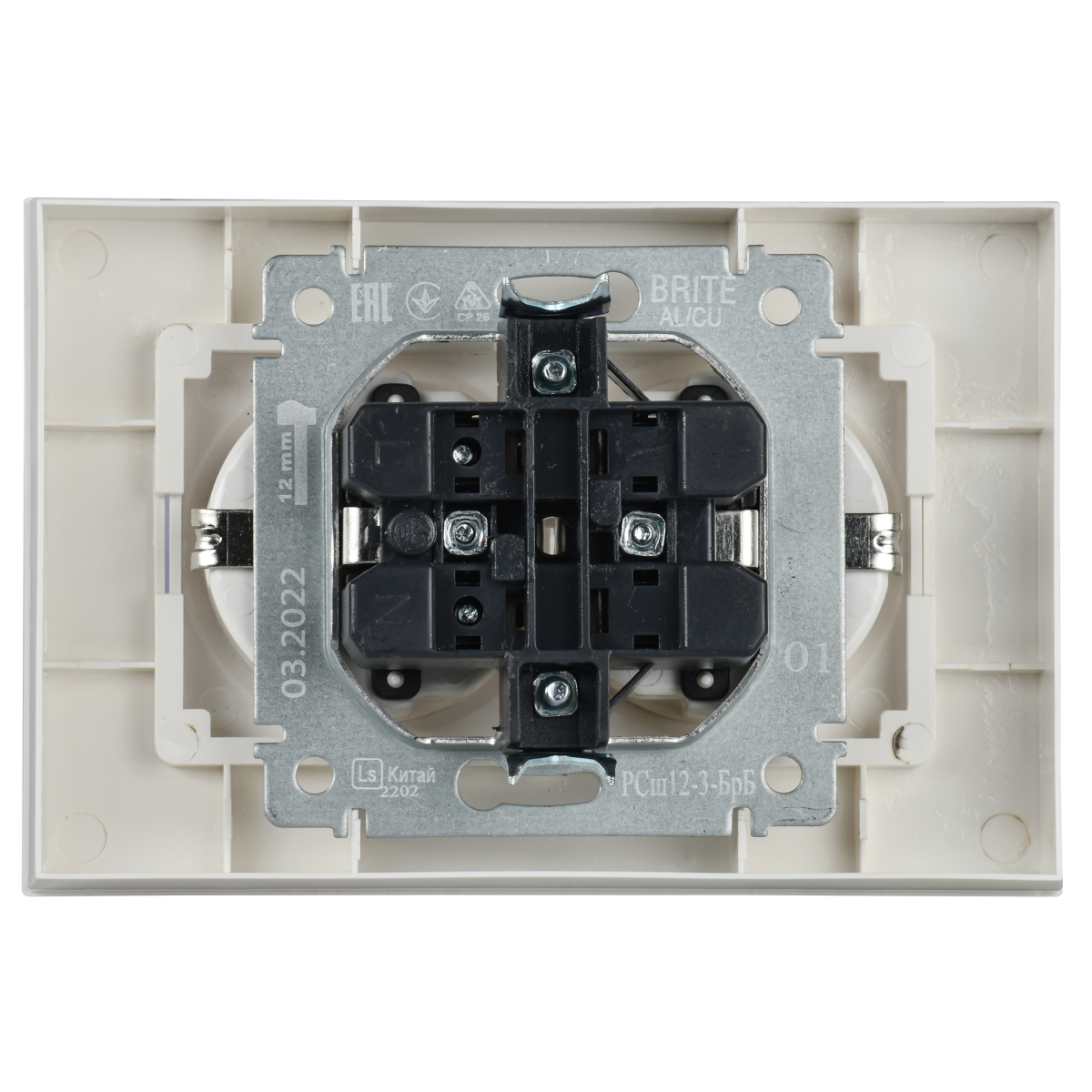 BRITE Розетка 2-местная с заземлением с защитными шторками 16А в сборе РСш12-3-БрБ белый