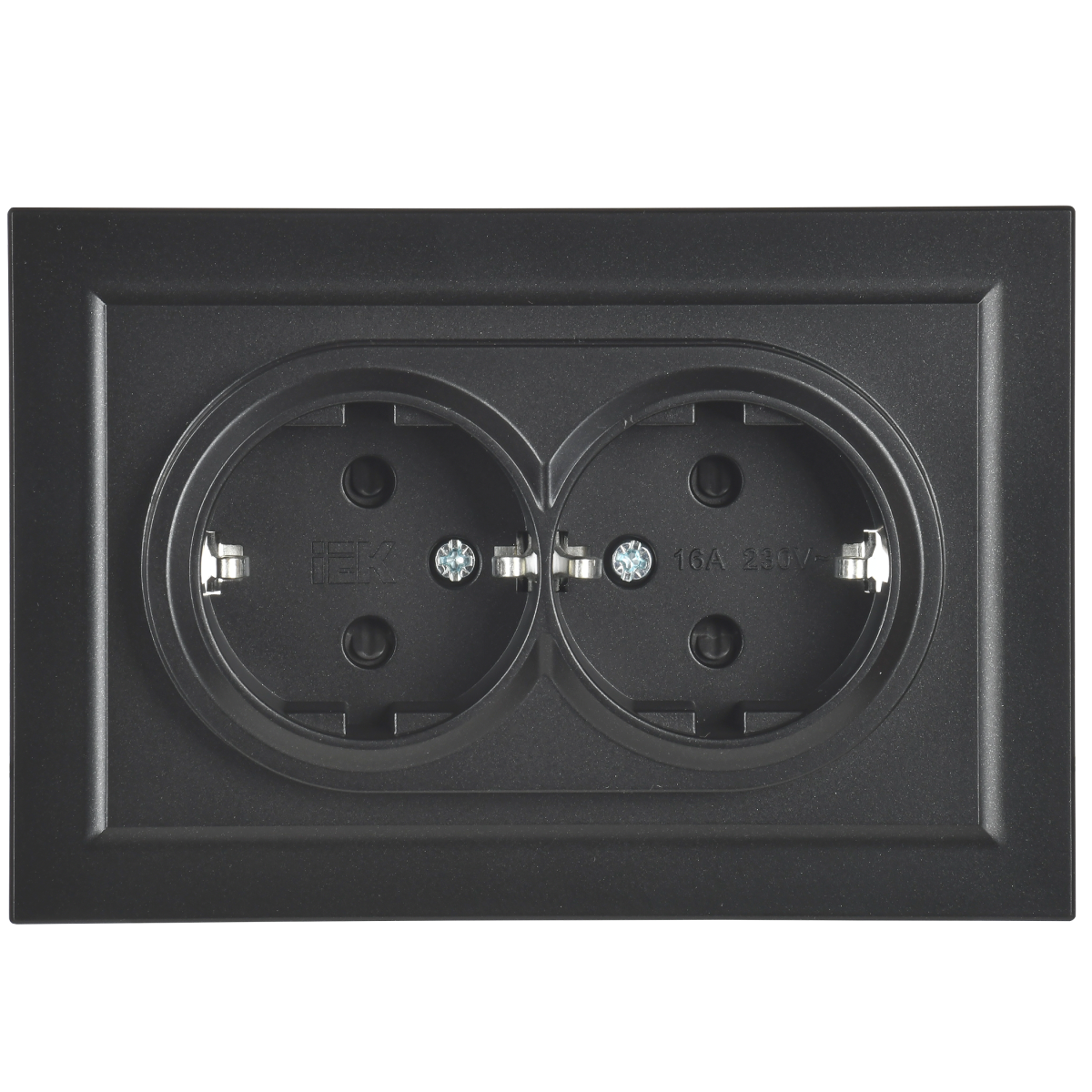 Купить BRITE Розетка 2-местная с заземлением с защитными шторками 16А в сборе РСш12-3-БрЧ черный | код BR-R24-16-K02-F | IEK | Магазин электрики - электрооборудование от разных производителей.