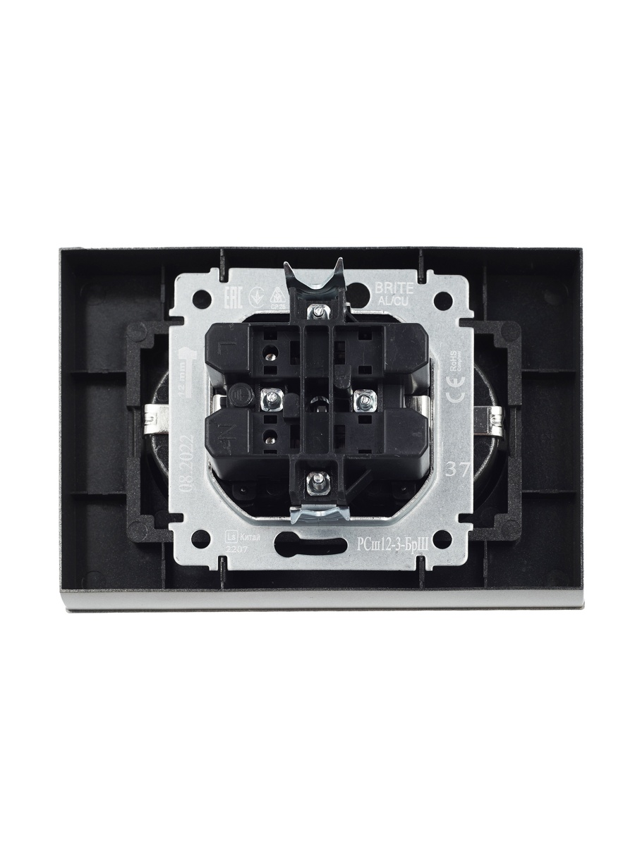 Наименование в прайсе производителя BRITE Розетка 2-местная с заземлением с защитными шторками 16А в сборе РСш12-3-БрШ шампань