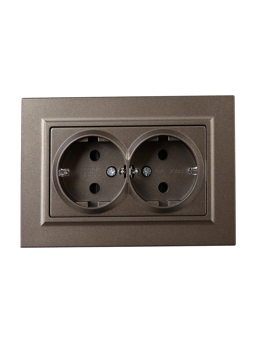 Купить BRITE Розетка 2-местная с заземлением с защитными шторками 16А в сборе РСш12-3-БрТБ темная бронза | код BR-R24-16-K45-F | IEK | Магазин электрики - электрооборудование от разных производителей.
