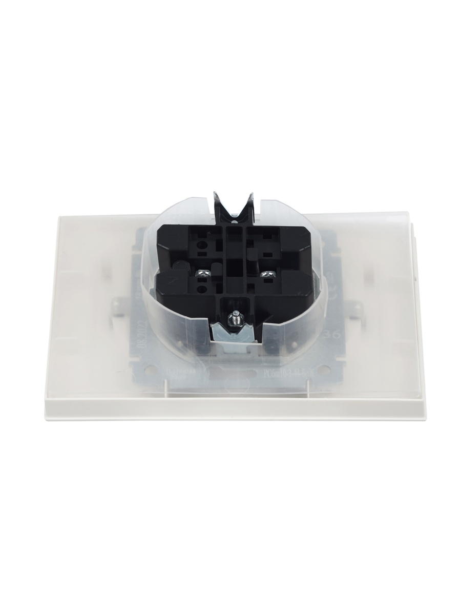 Наименование в прайсе производителя BRITE Розетка 2-местная с заземлением с защитными шторками и крышкой 16А в сборе IP44 РСбш12-3-44-БрЖ жемчуг