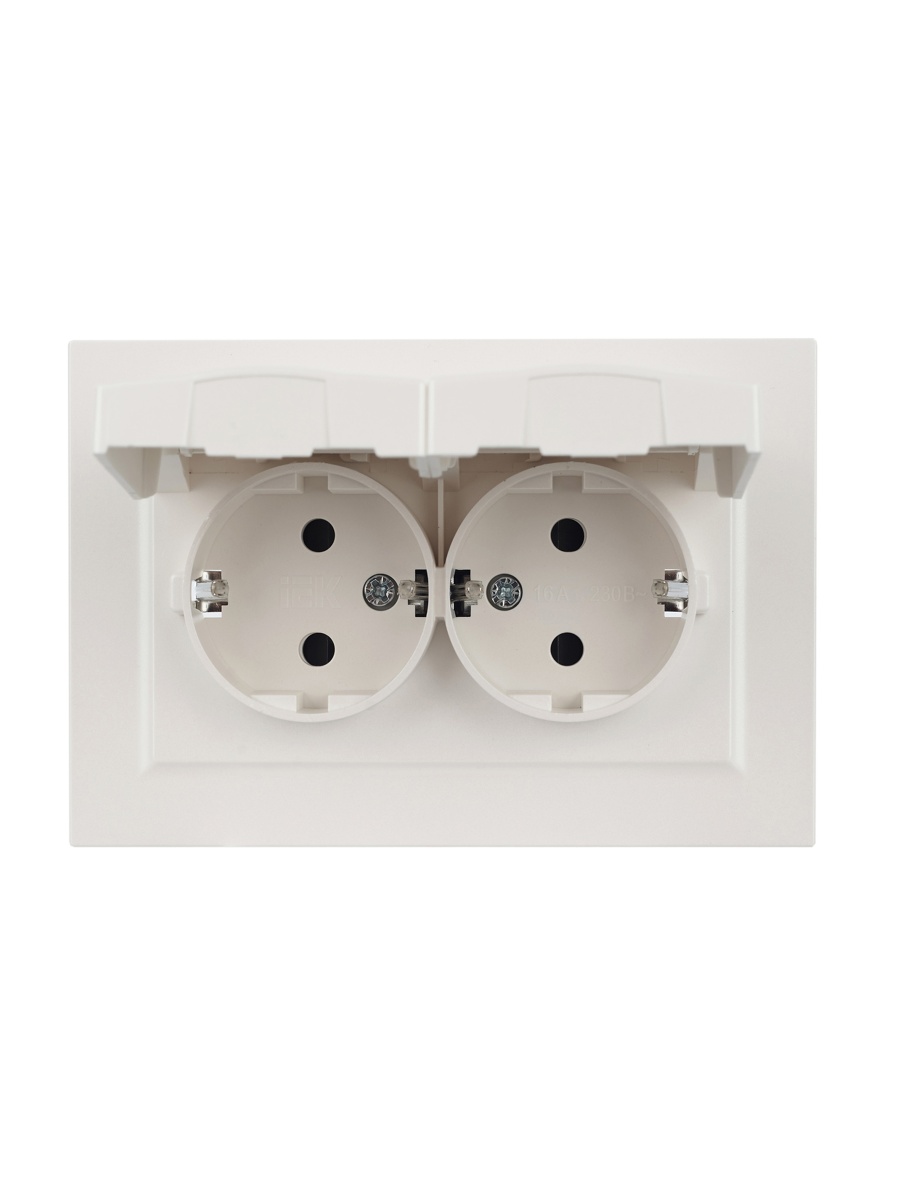 Купить BRITE Розетка 2-местная с заземлением с защитными шторками и крышкой 16А в сборе IP44 РСбш12-3-44-БрЖ жемчуг | код BR-R26-16-44-K36-F | IEK | Магазин электрики - электрооборудование от разных производителей.