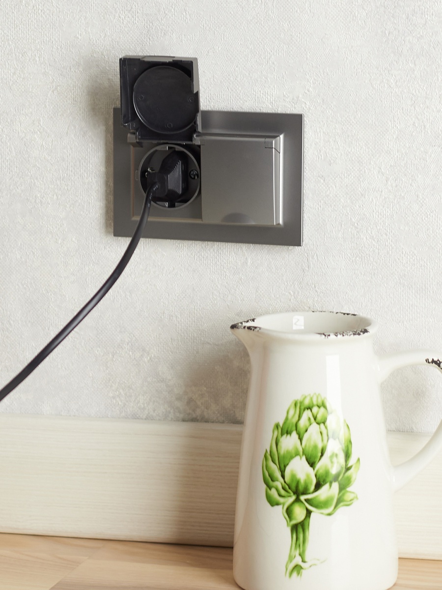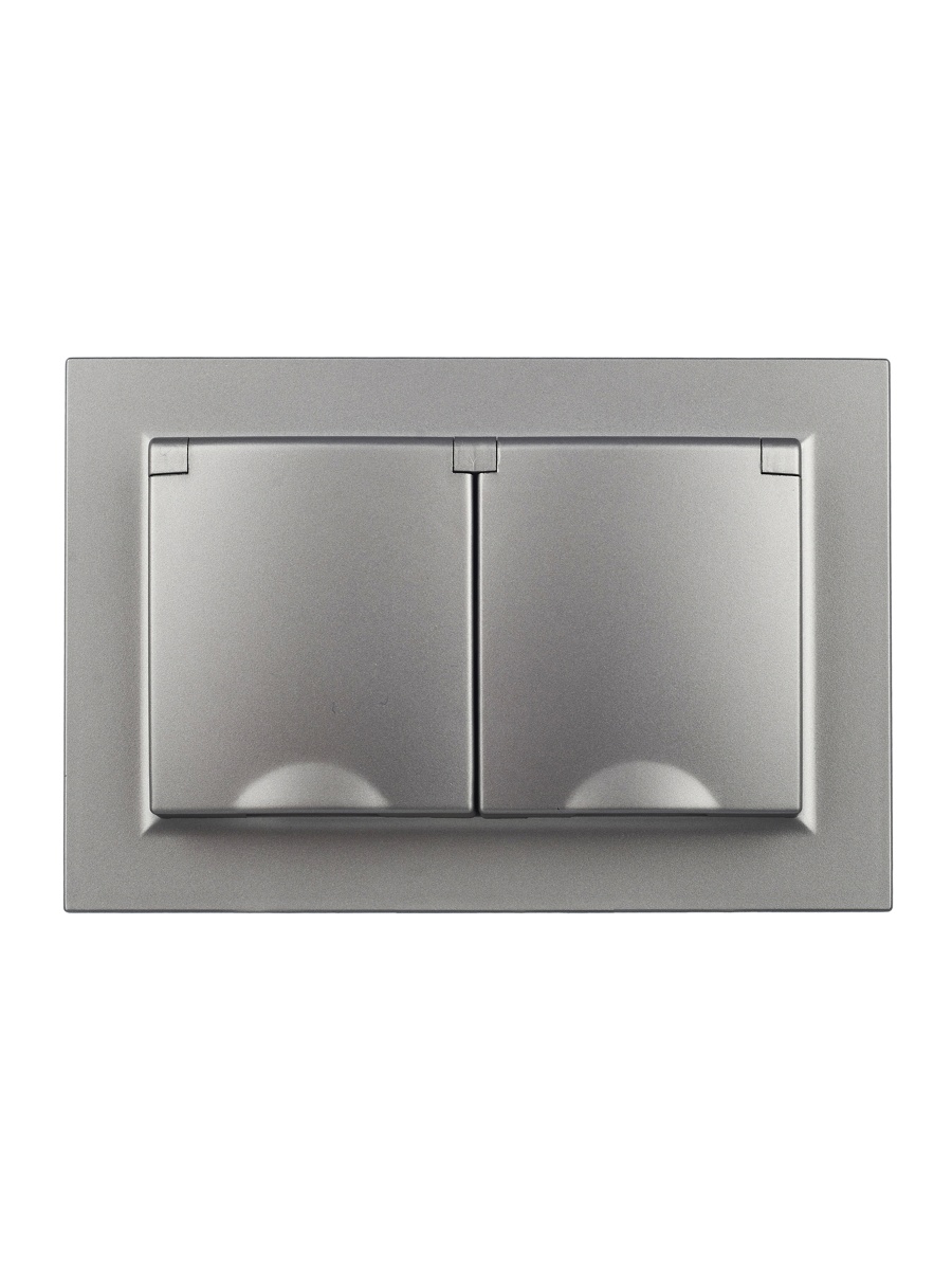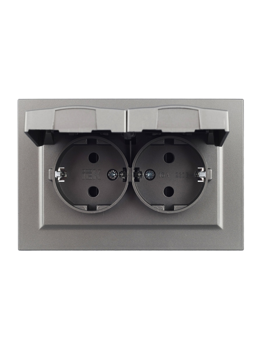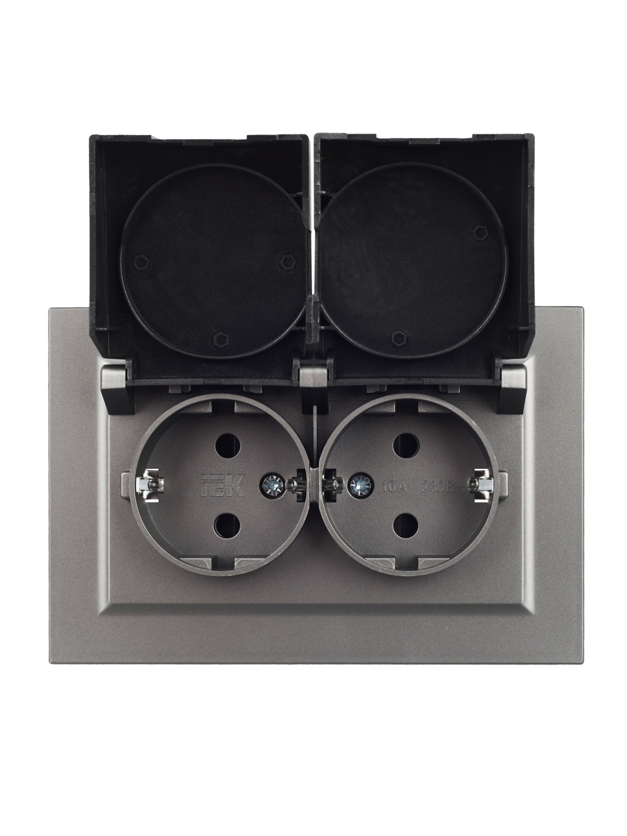 Купить BRITE Розетка 2-местная с заземлением с защитными шторками и крышкой 16А в сборе IP44 РСбш12-3-44-БрС сталь | код BR-R26-16-44-K46-F | IEK | Магазин электрики - электрооборудование от разных производителей.