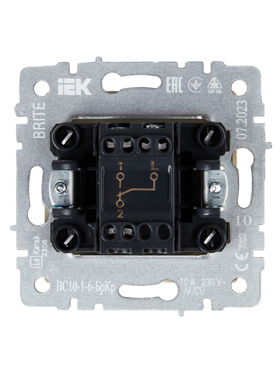 Купить BRITE Выключатель 1-клавишный проходной 10А ВС10-1-6-БрКр бежевый | код BR-V12-0-10-K10 | IEK | Магазин электрики - электрооборудование от разных производителей.