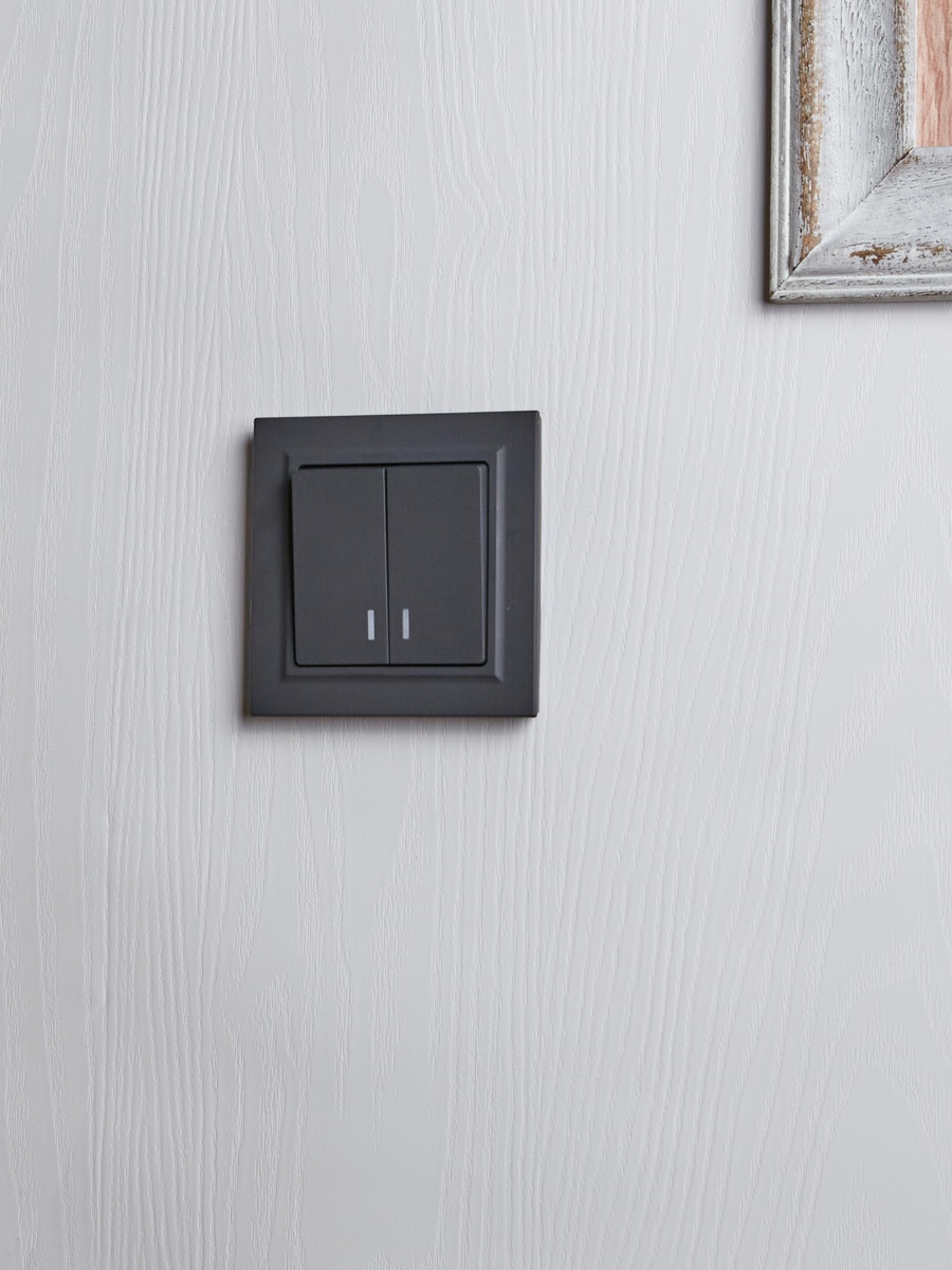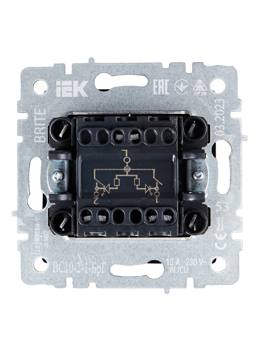 Наименование в прайсе производителя BRITE Выключатель 2-клавишный с индикацией 10А ВС10-2-1-БрГ графит