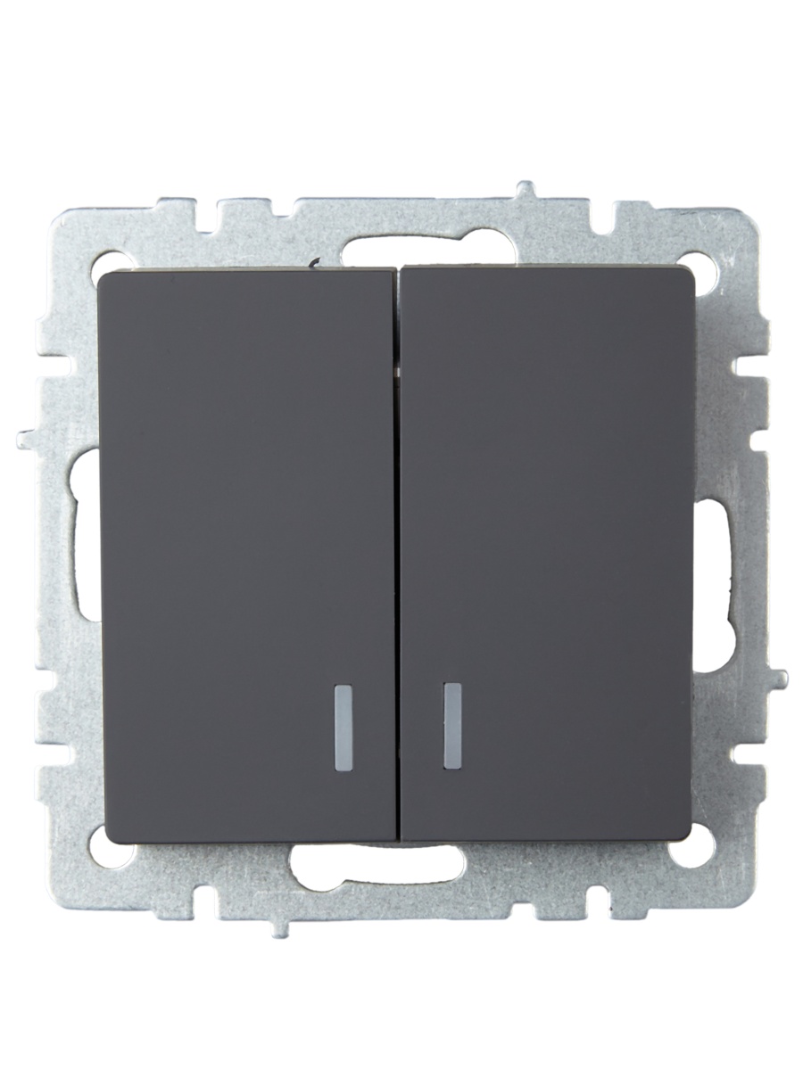 BRITE Выключатель 2-клавишный с индикацией 10А ВС10-2-1-БрГ графит
