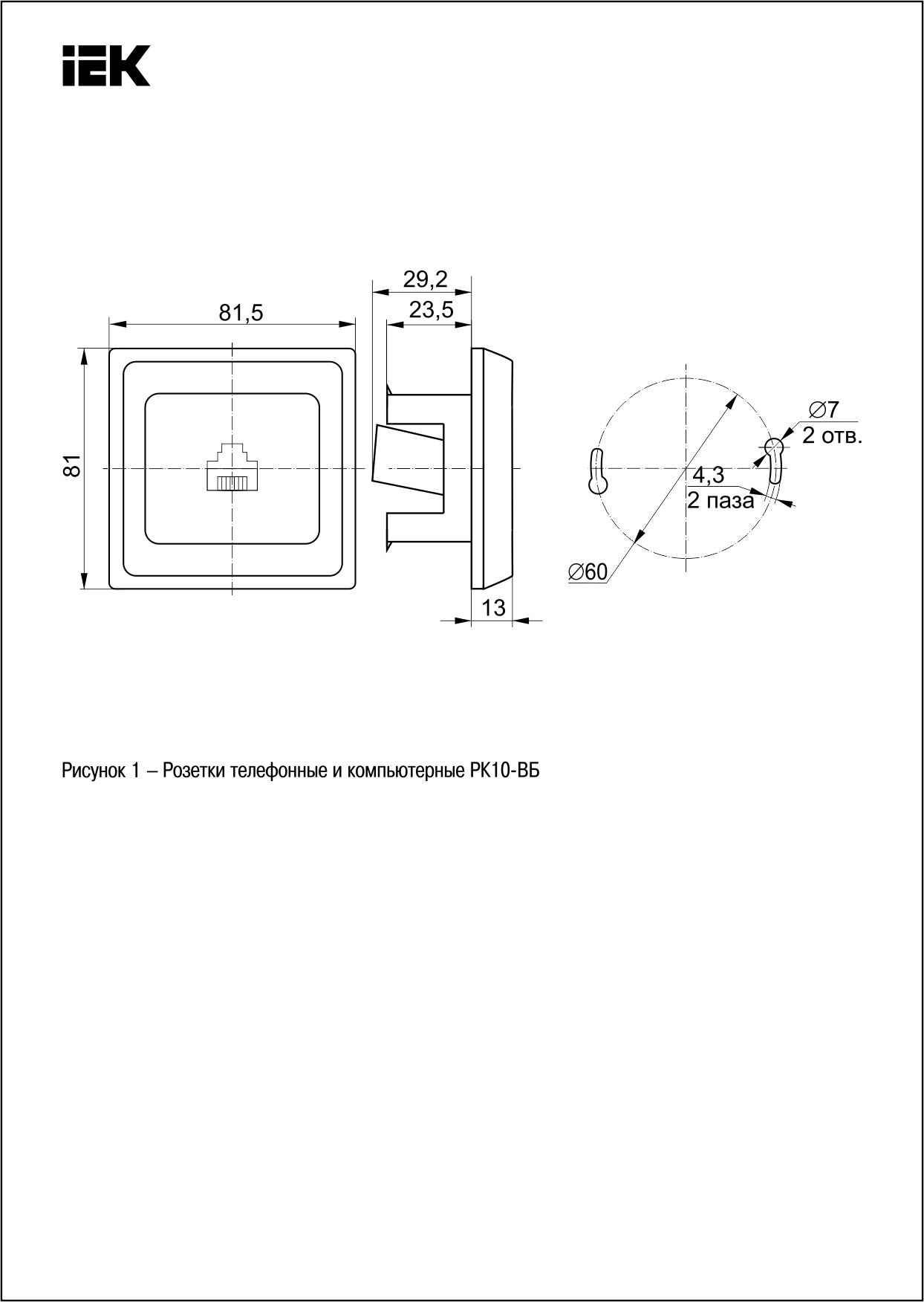 Наименование в прайсе производителя Розетка 1-местная компьютерная РК10-ВБ RJ45 Cat5e ВЕГА белый