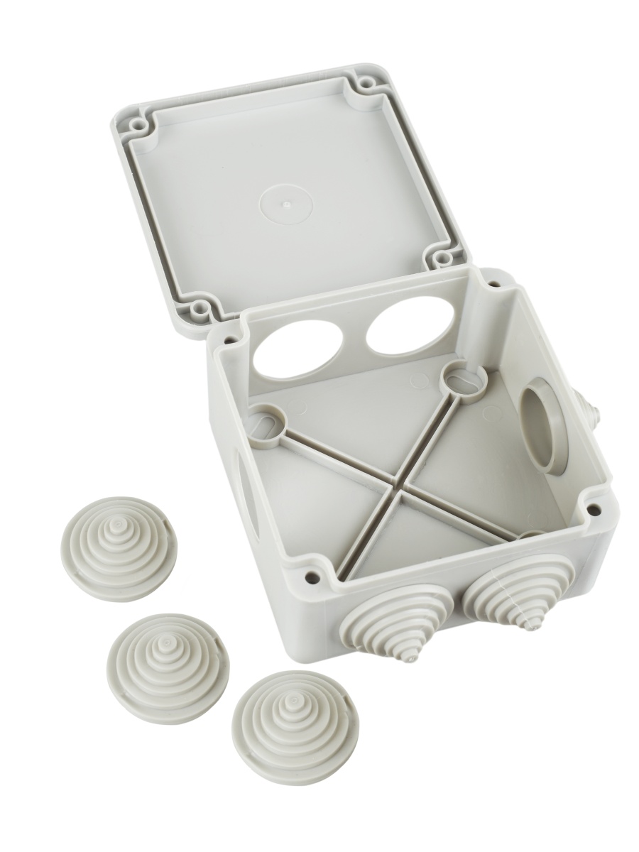 Купить Коробка распаячная КМ для открытой проводки 100х100х45мм IP44 6 вводов (RAL 7035) | код UKO11-100-100-045-K41-44 | IEK | Магазин электрики - электрооборудование от разных производителей.