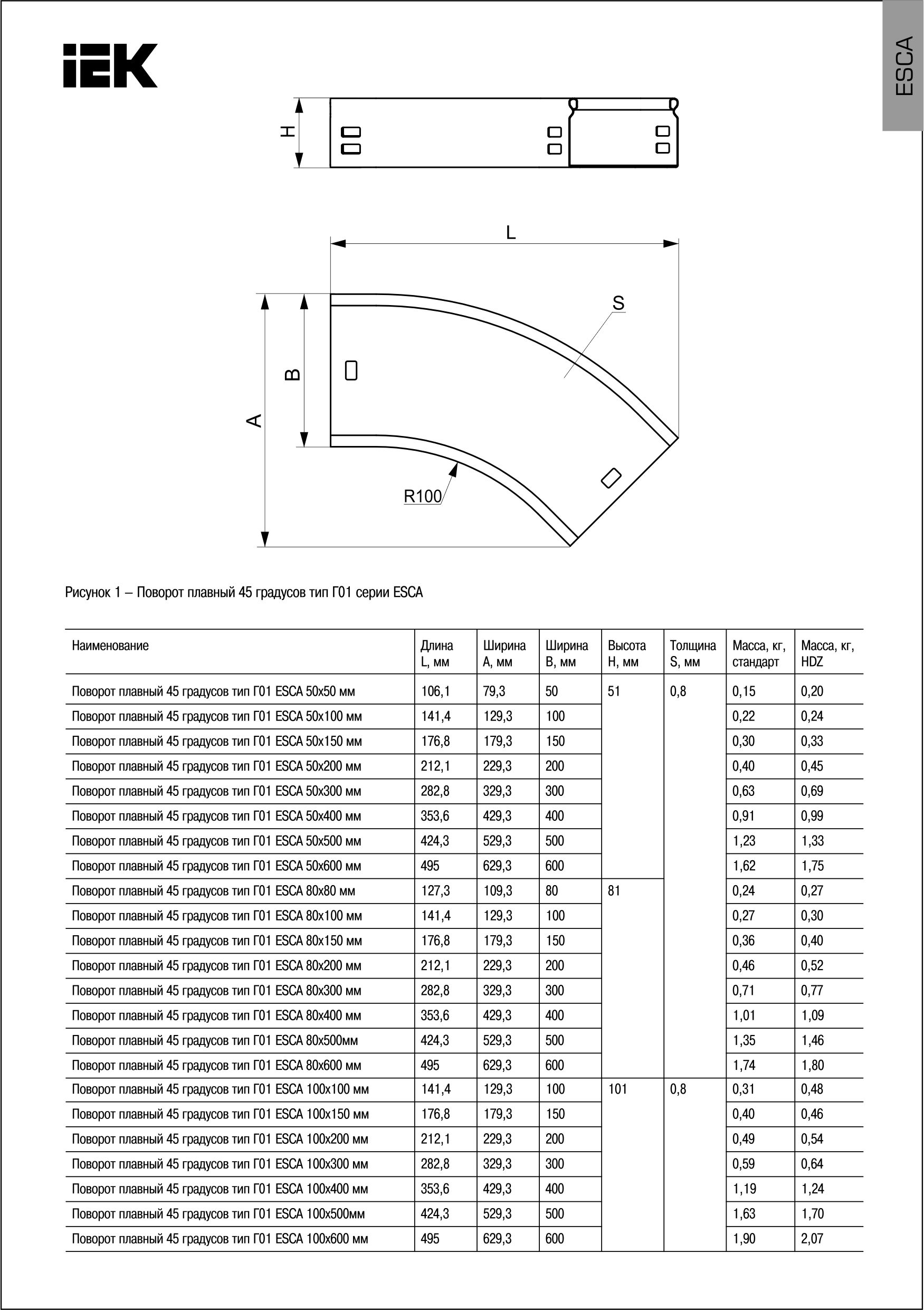 Наименование в прайсе производителя Поворот плавный 45град (тип Г01) ESCA 80х100мм HDZ