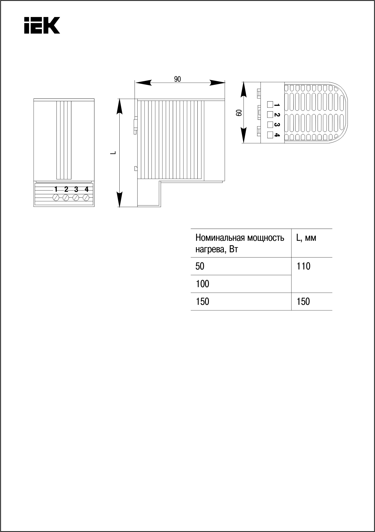 Наименование в прайсе производителя Обогреватель на DIN-рейку в корпусе 150Вт IP20