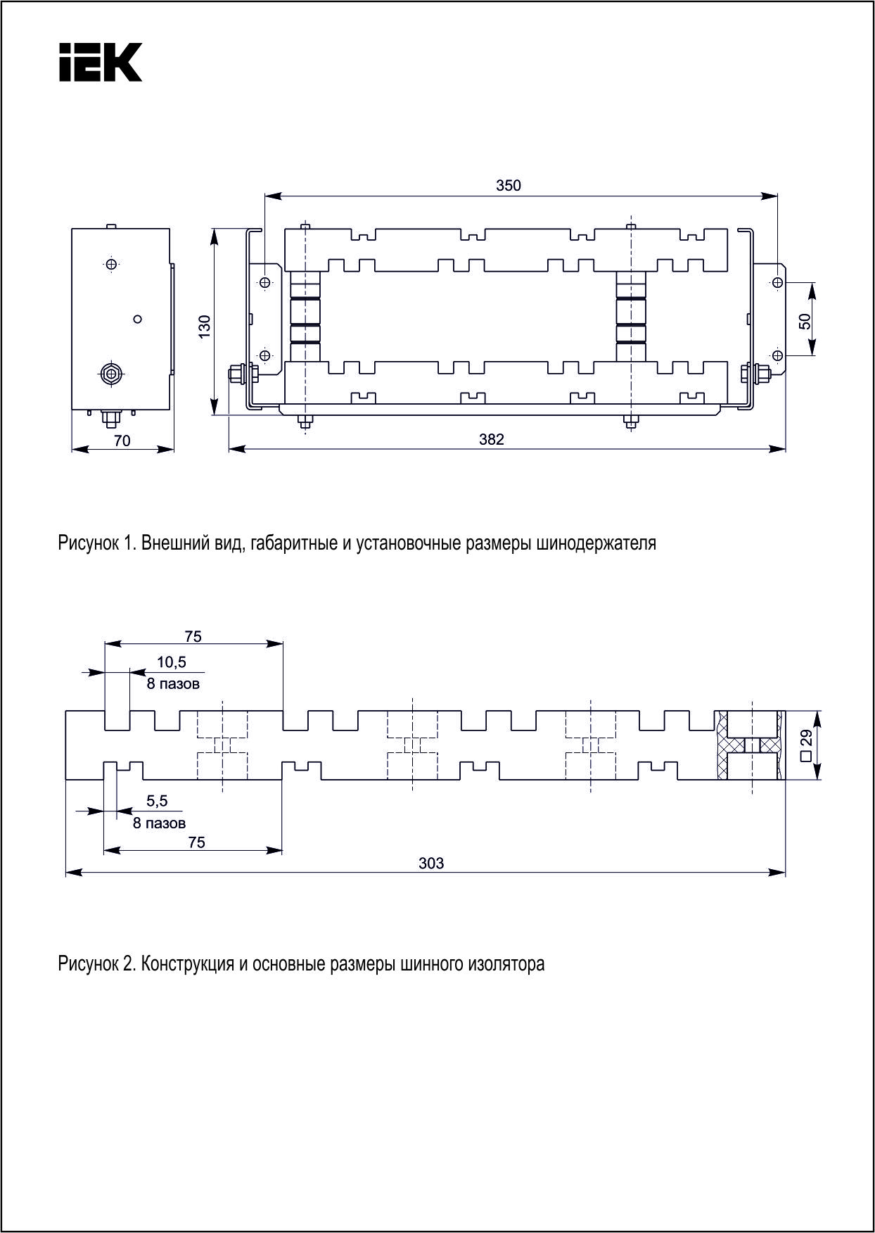 Наименование в прайсе производителя Изолятор шинный плоский ИШП 4P для шин 5мм и 10мм 303мм
