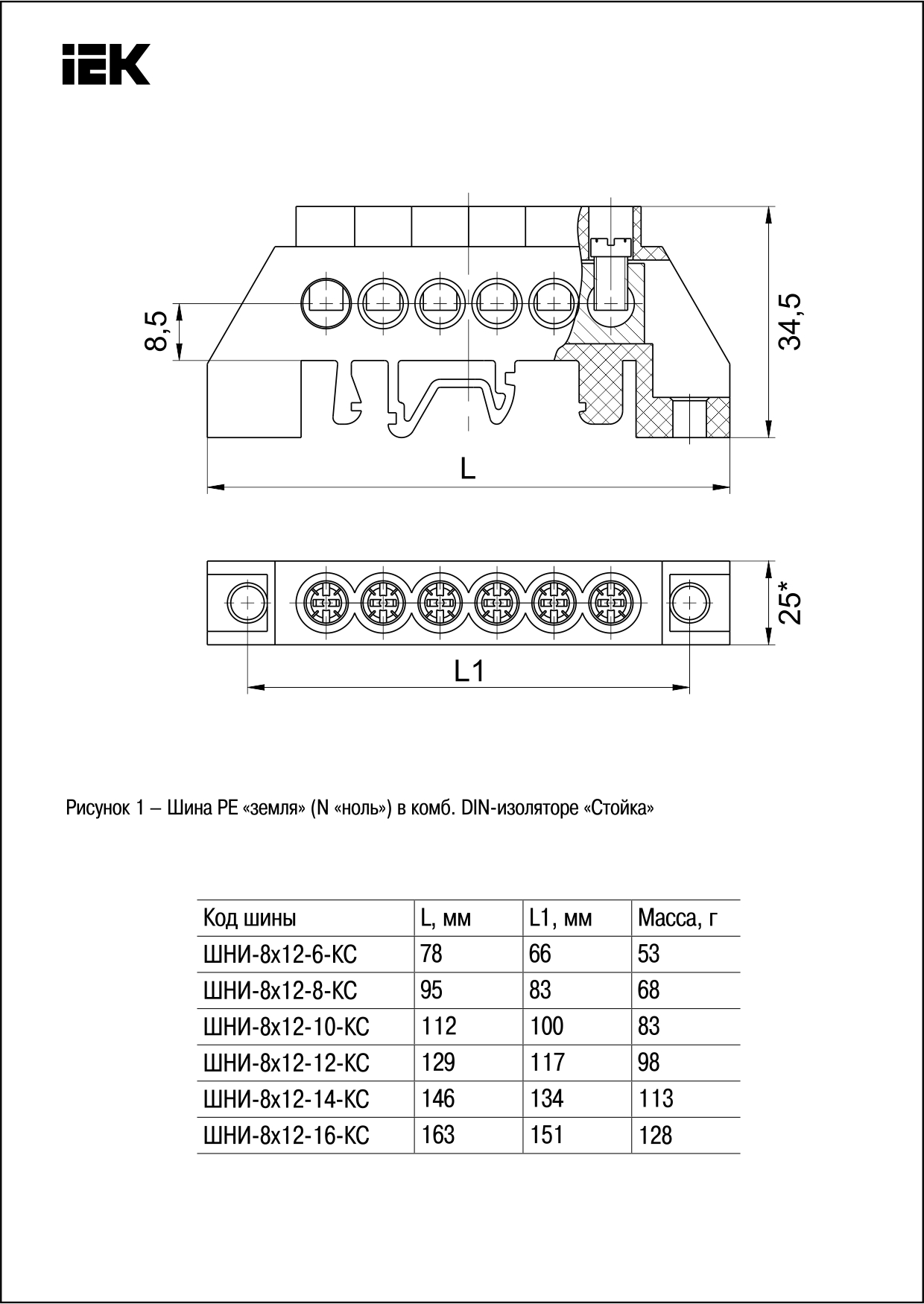Наименование в прайсе производителя Шина PE "земля" в комбинированном DIN-изоляторе типа "Стойка" ШНИ-8х12-12-КС-Ж