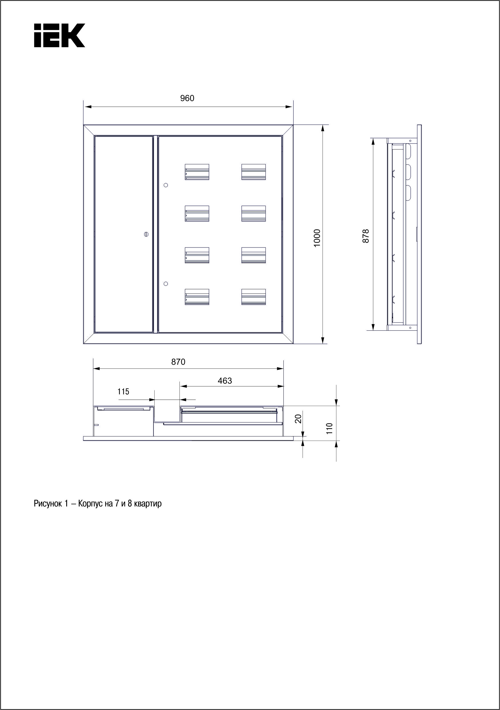 Корпус металлический ЩЭ-8-Э 36 IP31 (слаботочный отсек слева) LIGHT | код IND-MKM43-08-31-E-L | IEK