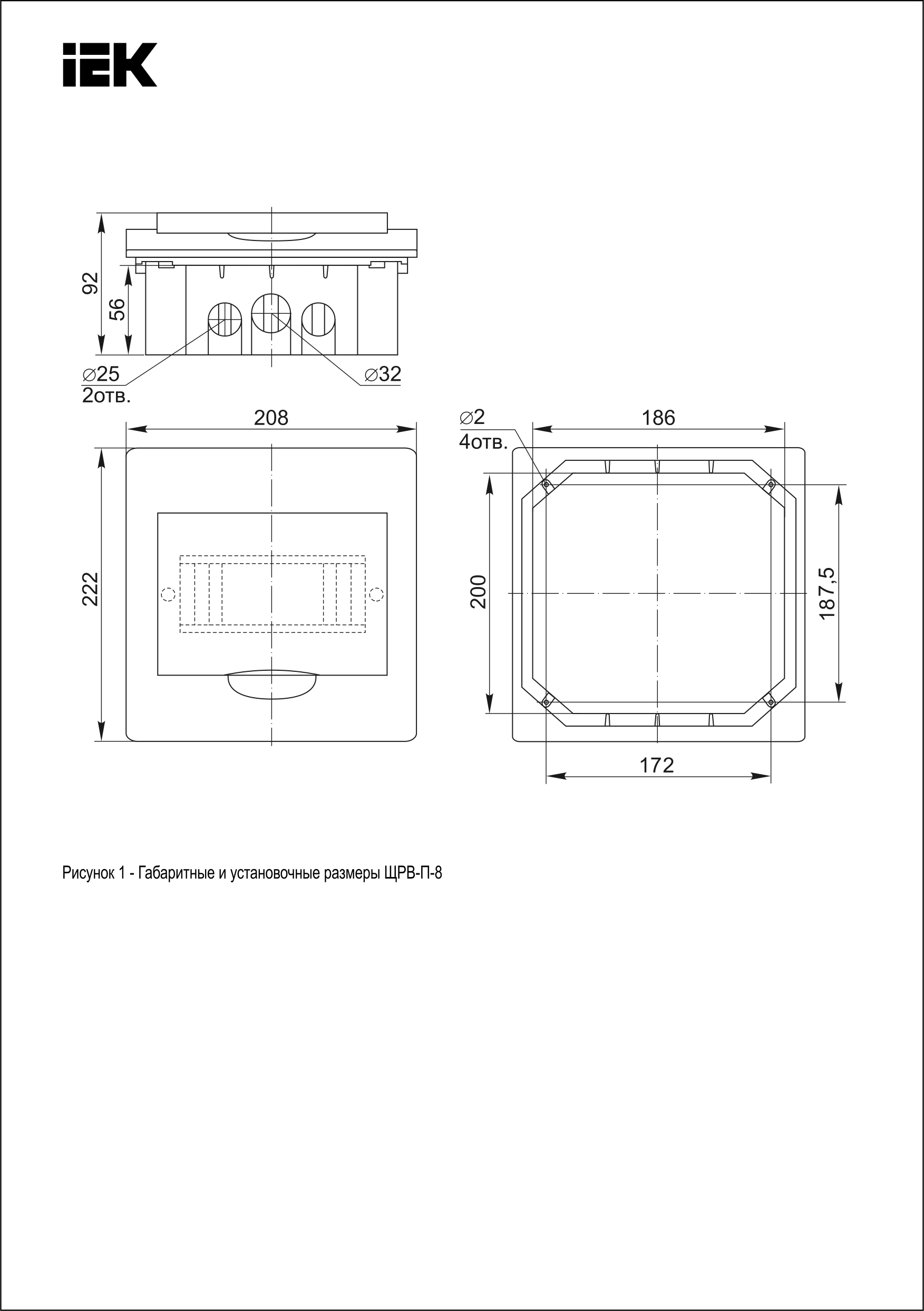 Бокс ЩРВ-П-8 модулей встраиваемый пластик IP41 LIGHT | код MKP12-V-08-40-20-L | IEK