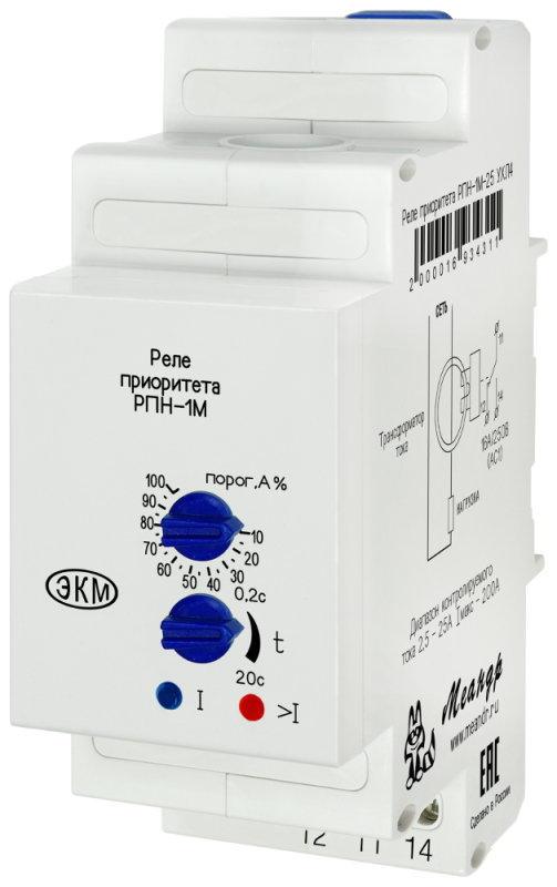 Реле приоритета нагрузки РПН-1М-40 (реле контроля тока), работает без питания, диапазон контролируемого тока от 4 до 40 | код 2000016934328 | МЕАНДР