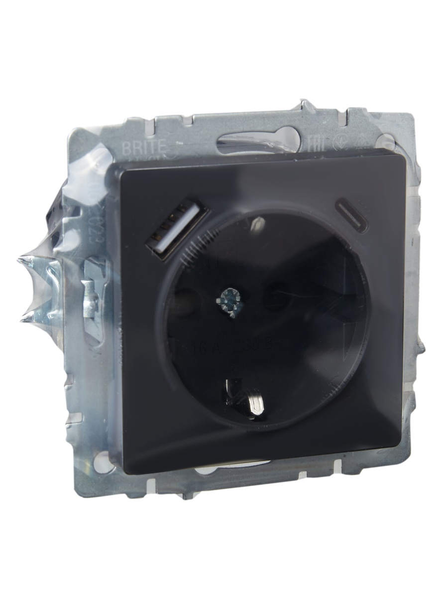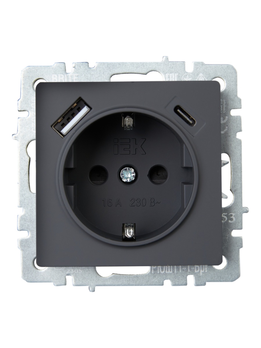 BRITE Роз. с з/к/ш 16А с USB A+C 18Вт РЮш11-1-БрГ граф. IEK | код BR-R14-16-U22-018-K53 | IEK