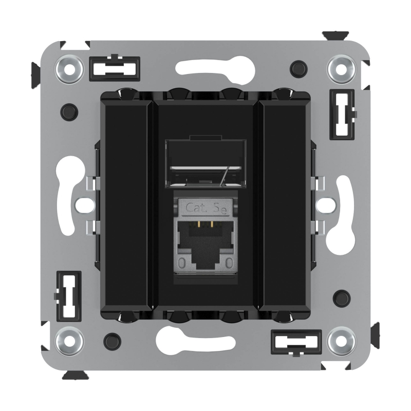 Компьютерная розетка RJ-45 в стену, кат.5e одинарная экранированная, Avanti,Черный квадрат | код 4402363 | DKC