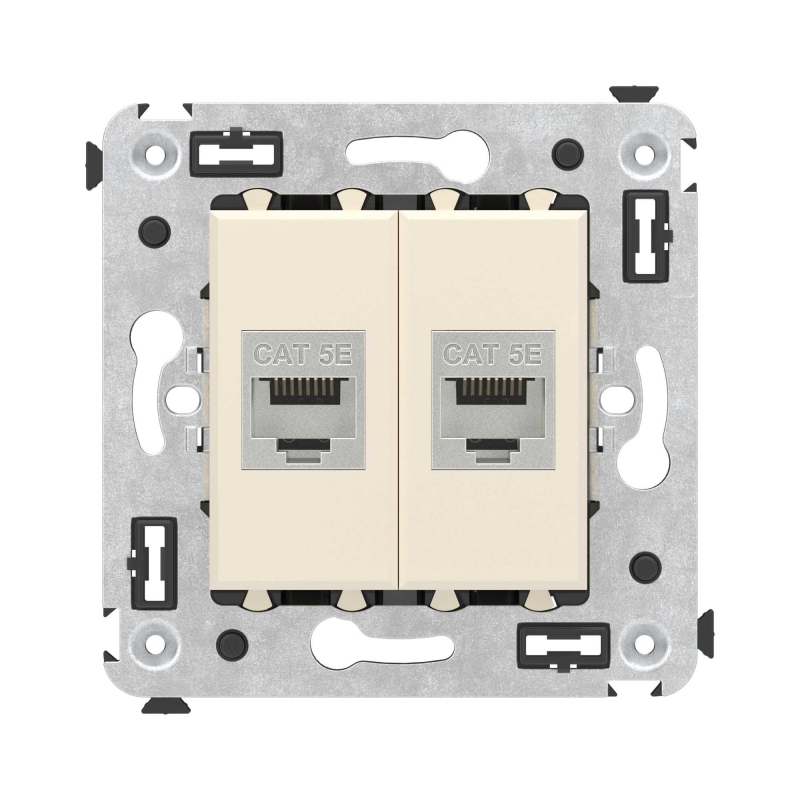 Компьютерная розетка RJ-45 без шторки в стену, кат.5e двойная экранированная, Avanti, Ванильная дымка | код 4405764 | DKC