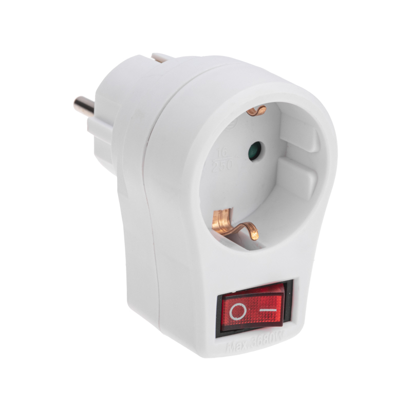 Адаптер сетевой 16А с выключателем, заземлением и защитными шторками, белый REXANT | код 11-1084 | REXANT