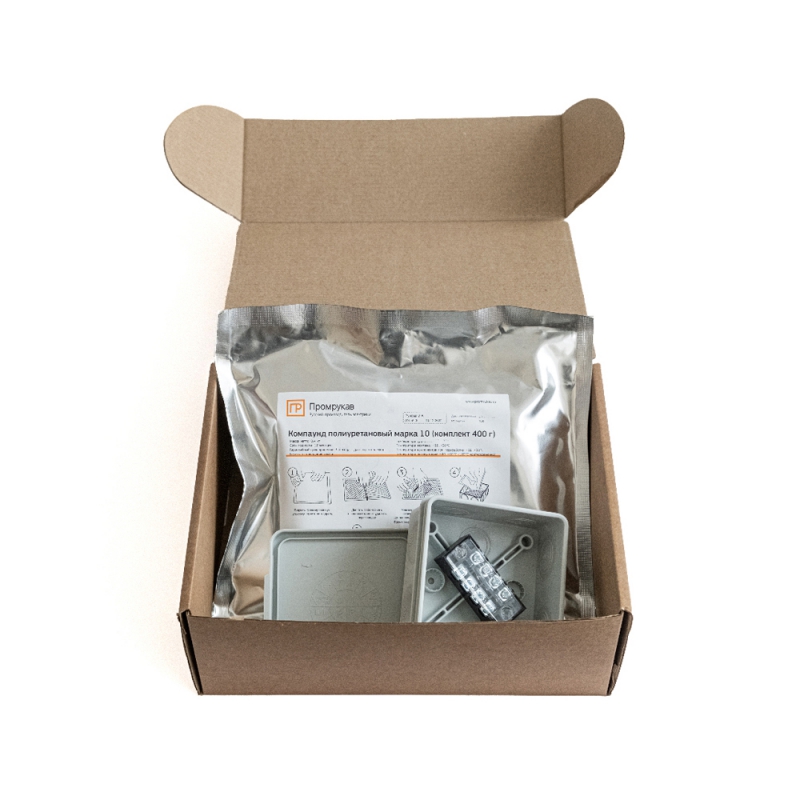 Коробка распределительная двухкомпонентная (HF) в комплекте с компаундом и с 4-кл. зажимами, сечение до 1,5 мм?, 80х80х40 серая Промрукав | код PR80.0174 | ПРОМРУКАВ