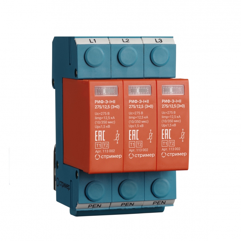 Устройство защиты от импульсных перенапряжений РИФ-Э-I+II 275/12,5 (3+0) УЗИП | код 113002 | Стример