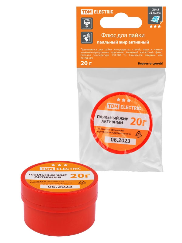 Флюс для пайки, паяльный жир активный, 20 г, банка, инд. упаковка, серия Алмаз TDM | код SQ1025-1512 | TDM