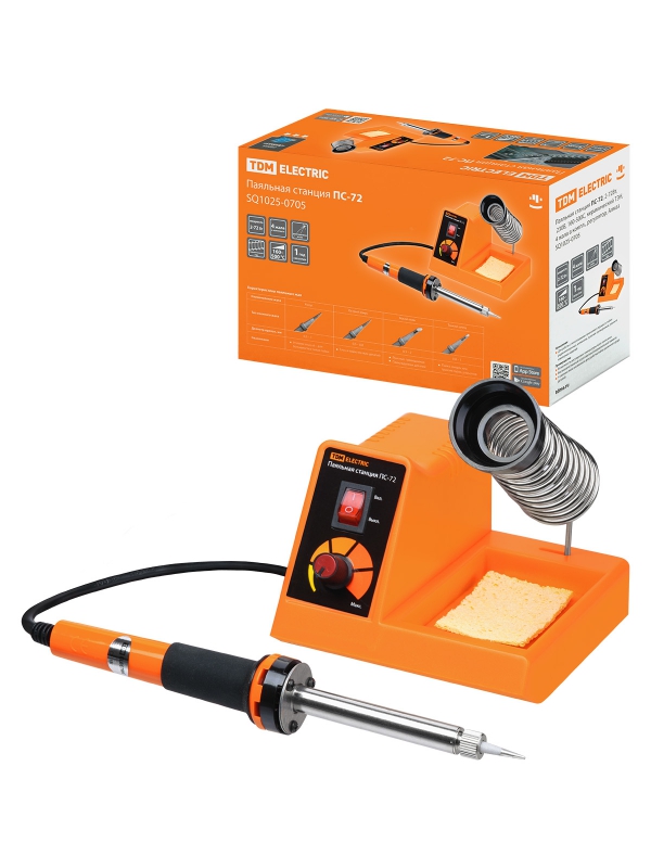 Паяльная станция ПС-72, 2-72Вт, 230В, 160-500С, керамический ТЭН, 4 жала в компл., регулятор, Алмаз | код SQ1025-0705 | TDM
