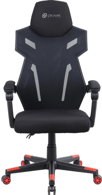 Кресло игровое Оклик 111G черный/красный сиденье черный сетка/ткань с подголов. крестов. пластик черный | код 1873056 | Oklick