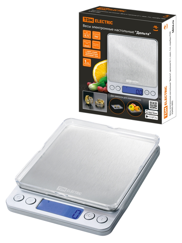 Весы электронные настольные Дельта, деление 0,1 г, макс. 3 кг, серебро,TDM | код SQ4005-0002 | TDM