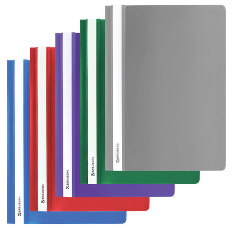 Скоросшиватель пластиковый BRAUBERG, А4, 130/180 мкм, ассорти, 221820 | код 221820 | BRAUBERG