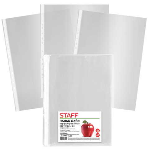 Папки-файлы БОЛЬШОГО ФОРМАТА (297х420 мм) А3, ВЕРТИКАЛЬНЫЕ, КОМПЛЕКТ 50 шт., 35 мкм, STAFF, 225769 | код 225769 | STAFF